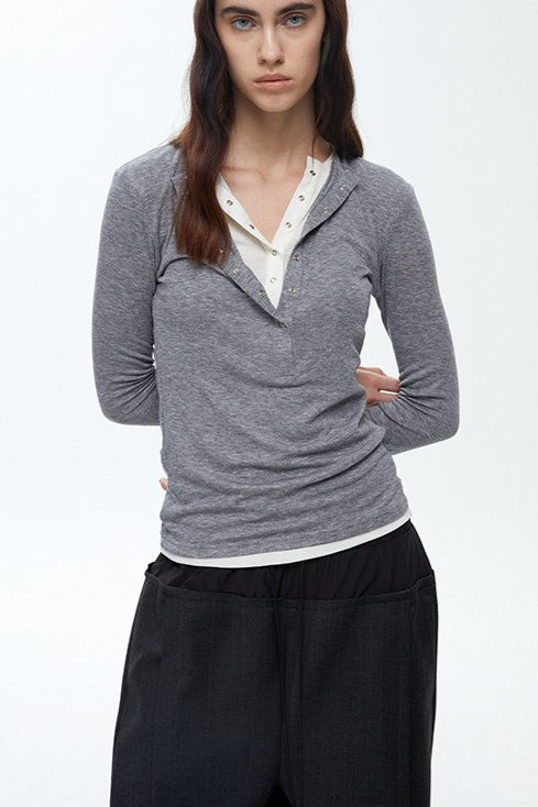 • Neckline: Henley Collar