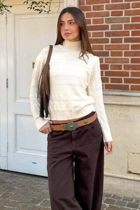 Cable Knit Round Neck Knit Top
