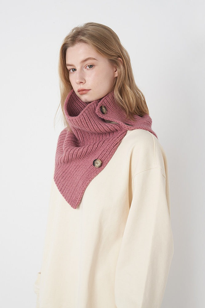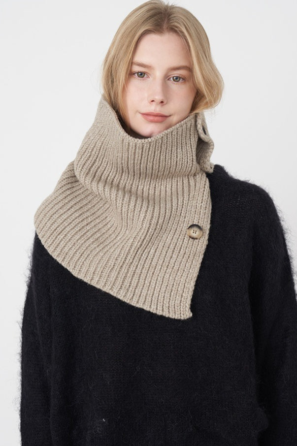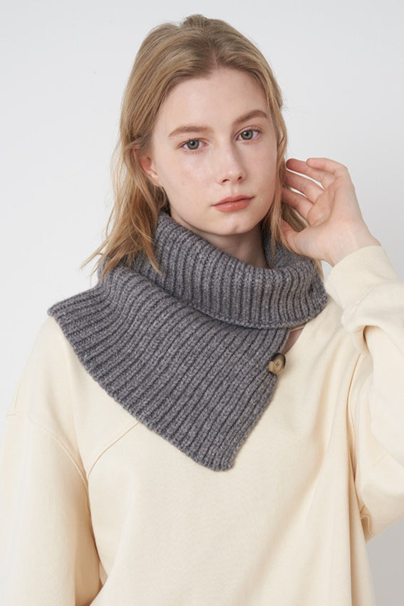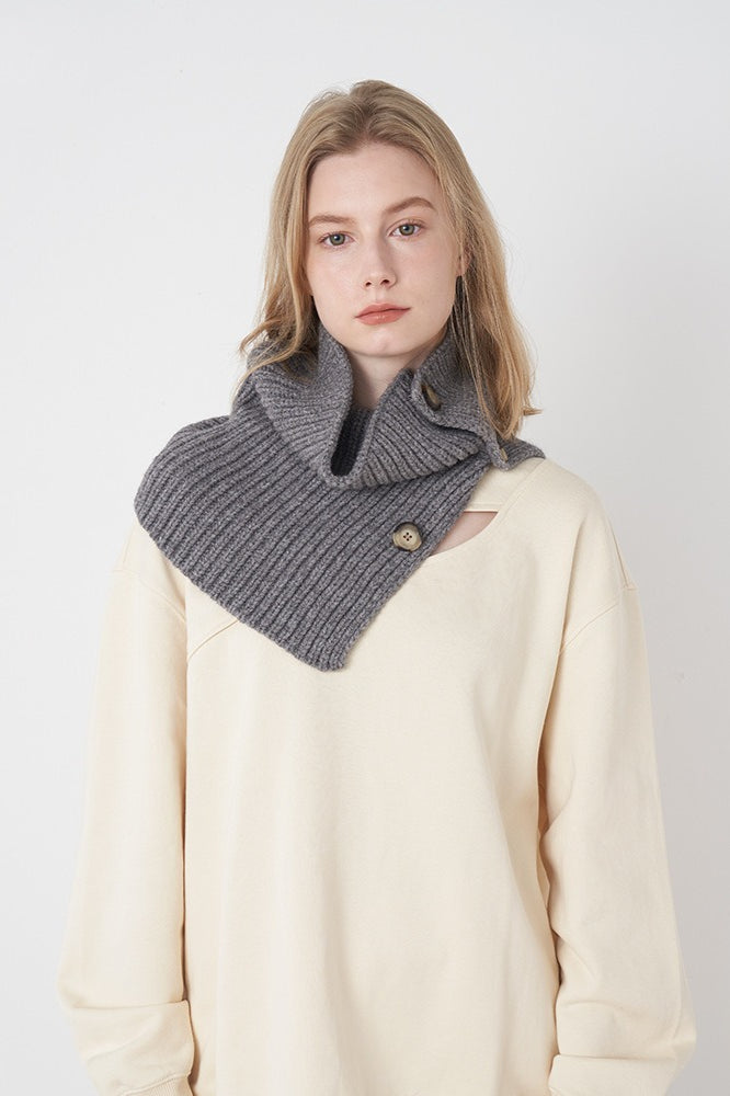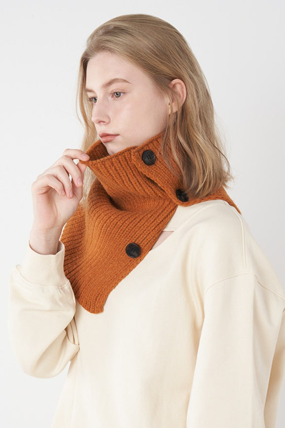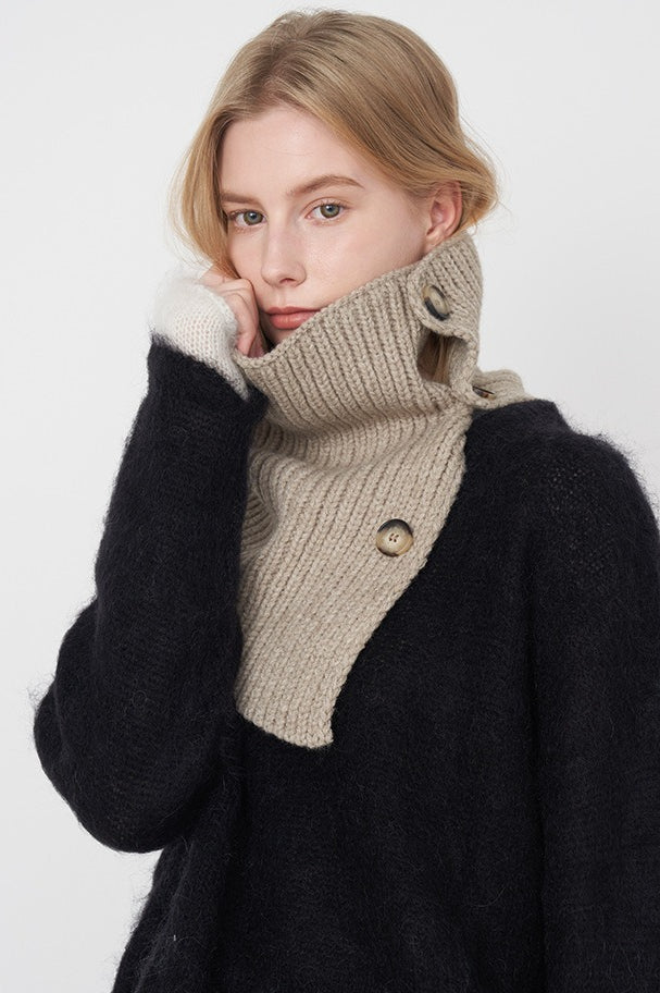 Wool Blend Solid Knitted Removable Buttoned Scarf