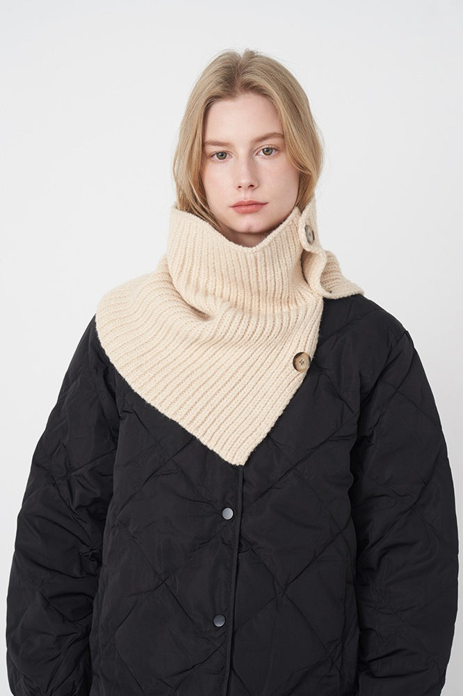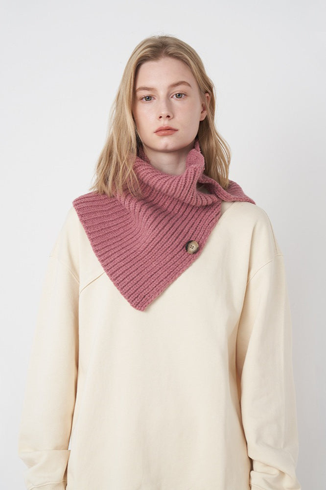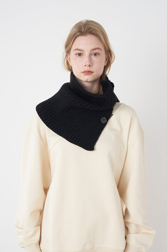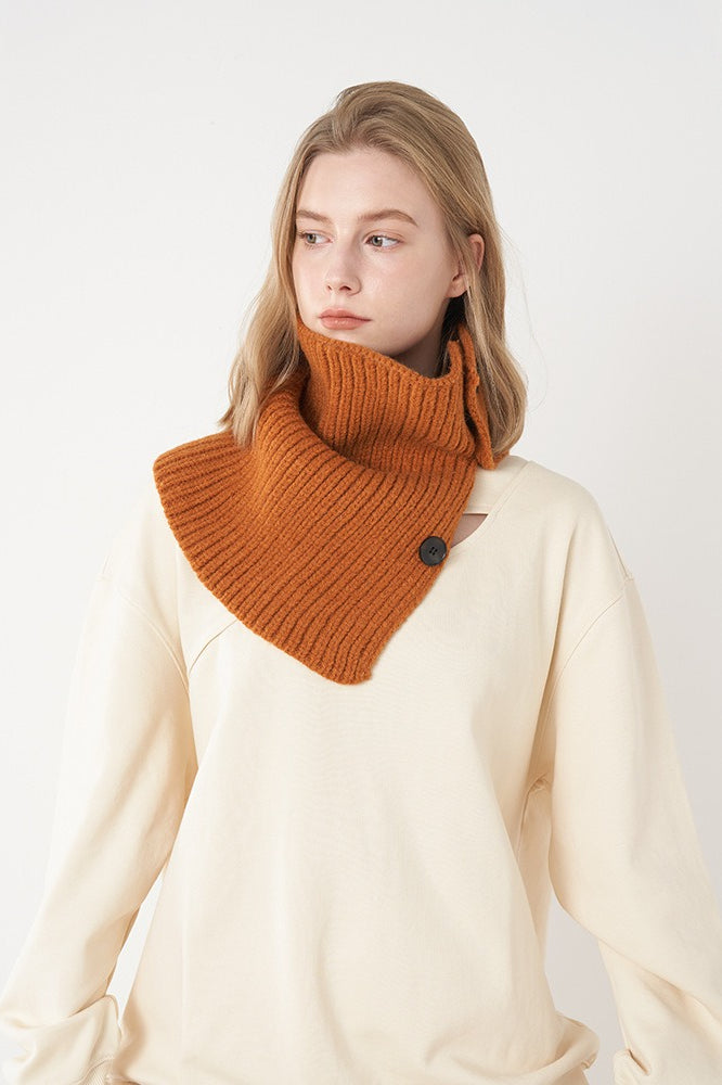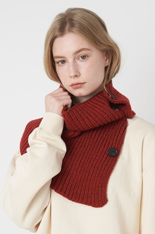 Wool Blend Solid Knitted Removable Buttoned Scarf