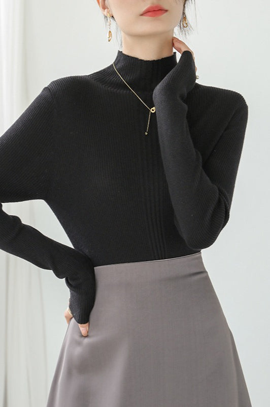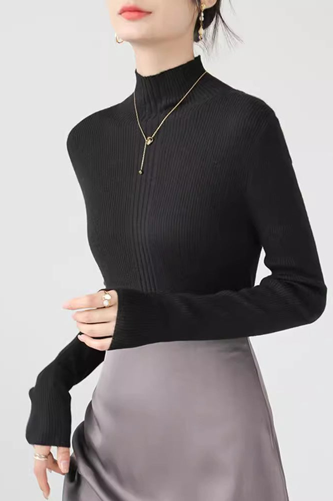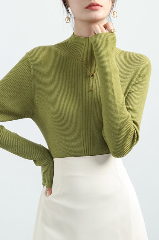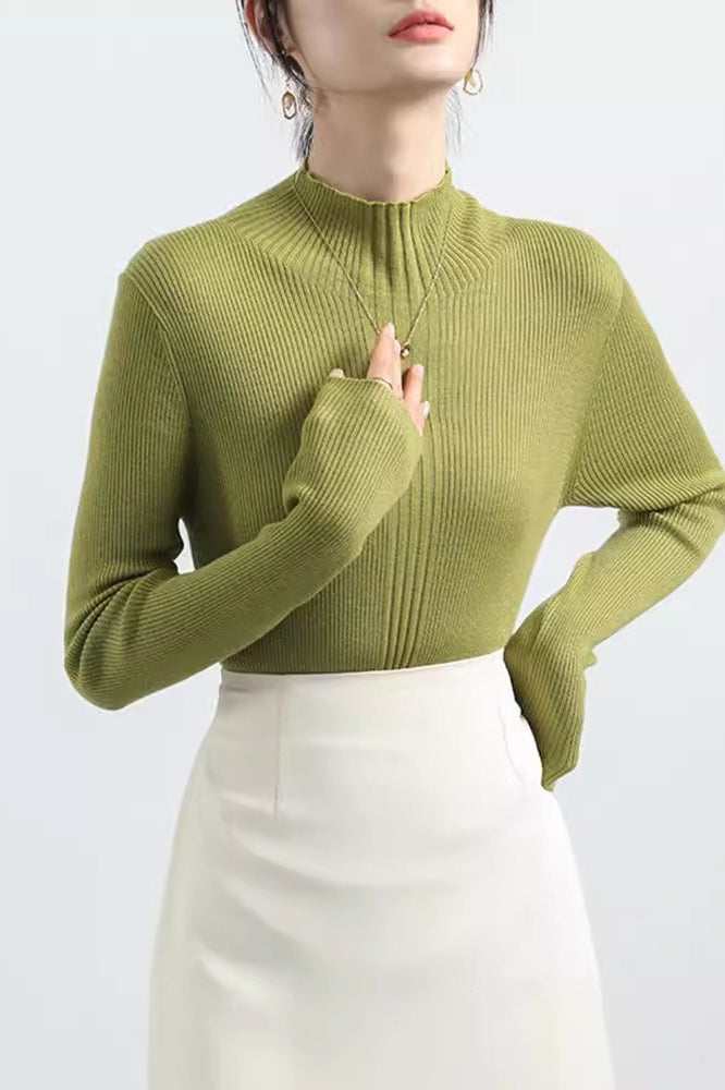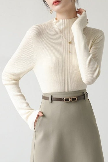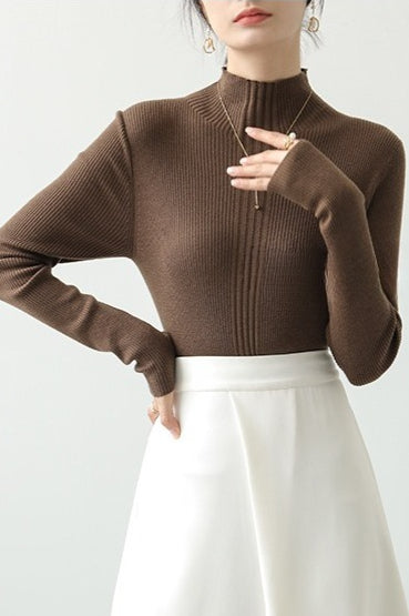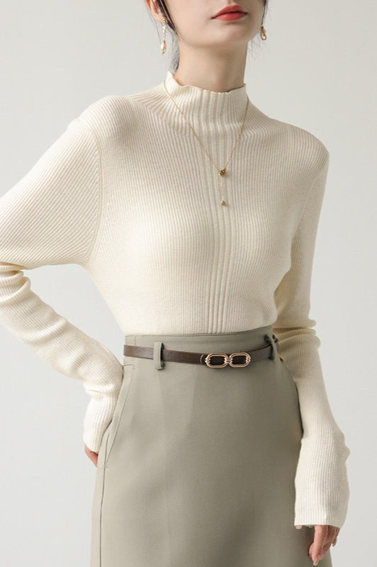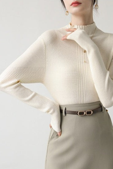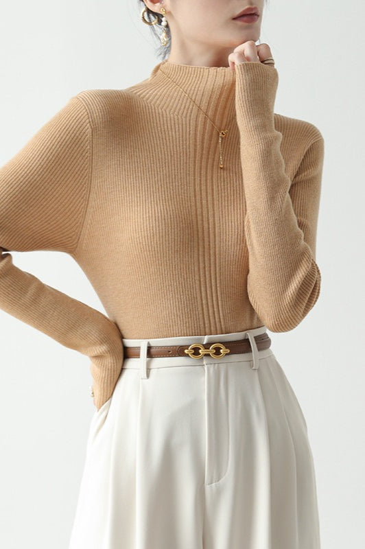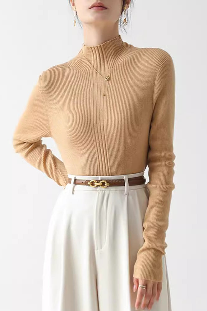 Elegant Apricot Mock Neck Long-Sleeve Pullover Knit Top