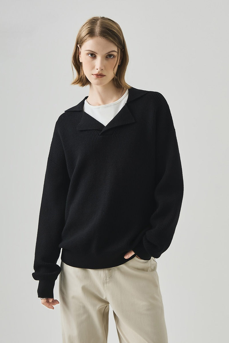 Oversized Lazy V-Neck Long-Sleeve Knit Top