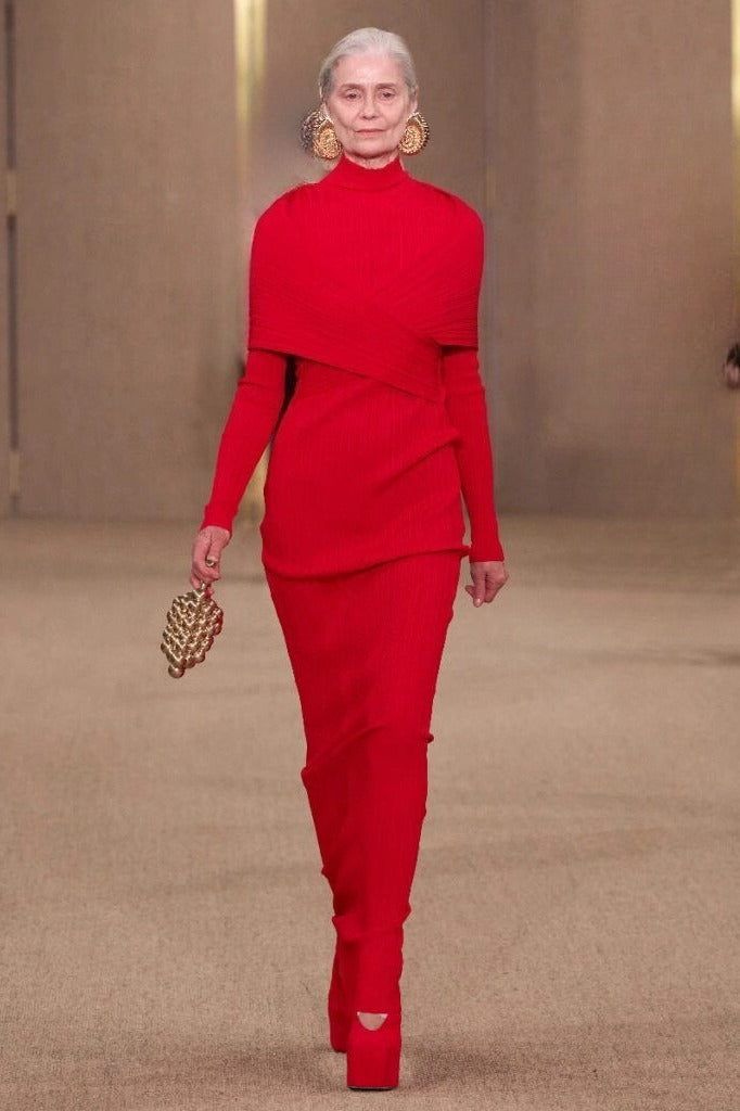 High Neck Cross Knit Jacquard Bodycon Maxi Sweater Dress