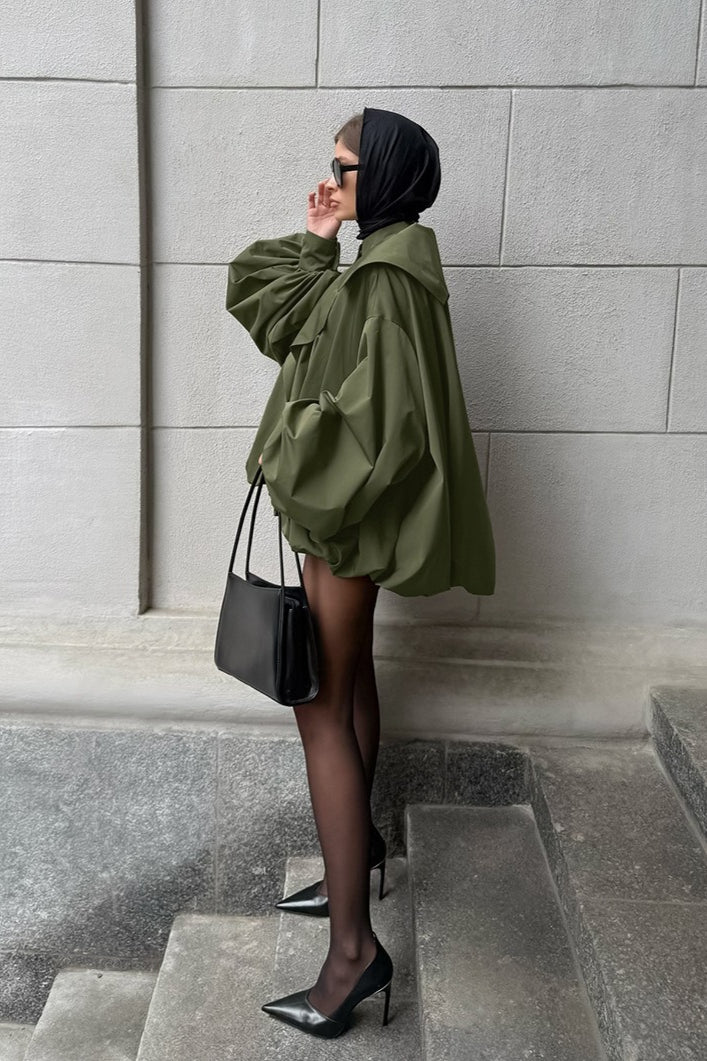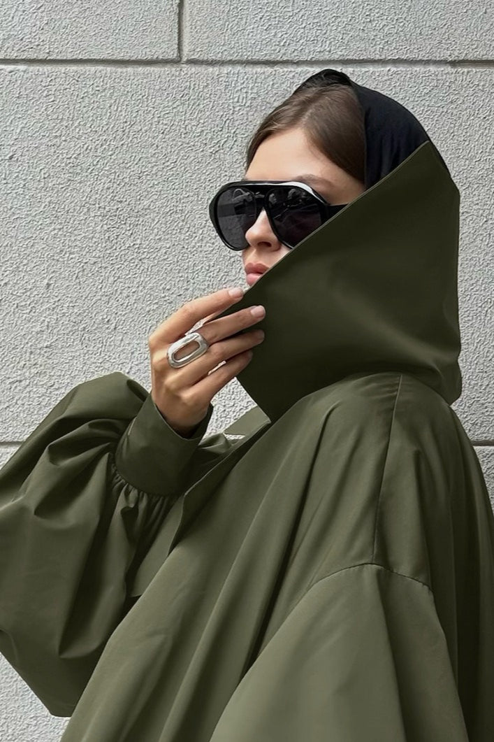 Retro Green Unique Oversized Slim Fake Two Piece Trench Jacket
