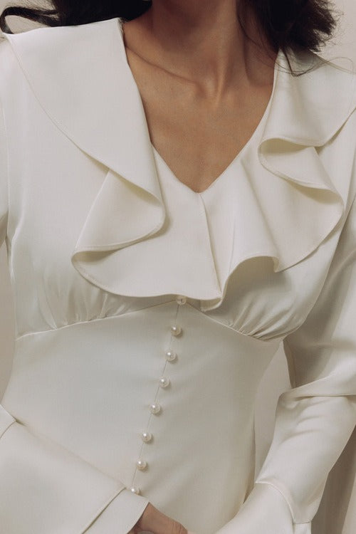 Vintage Ruffled V-Neck Flared Sleeve Maxi Dress